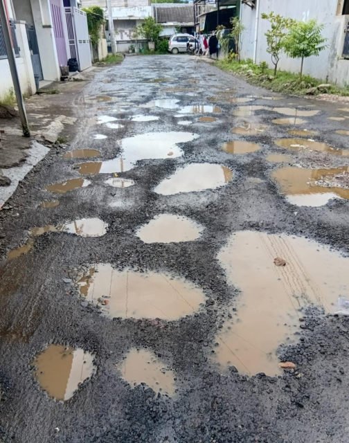 Di jalan ini, banyak terlihat lubang berukuran kecil, sedang hingga berukuran besar. Kondisi ini diperparah ketika musim hujan tiba. Jalan dengan lubang berukuran sedang dan besar, dipenuhi dengan air hujan yang membuat lubang tidak terlihat. Kondisi ini mengakibatkan banyak kendaraan yang melewati jalan rusak ini kaget dan hampir terjatuh. Beberapa diantaranya, merasakan tidak nyaman di bagian perut dan pinggang setelah lewat jalan ini. Apa lagi, sebagian besar masyarakat di perumahan melewati jalan rusak ini bisa mencapai 3 hingga 4 kali bolak- balik.